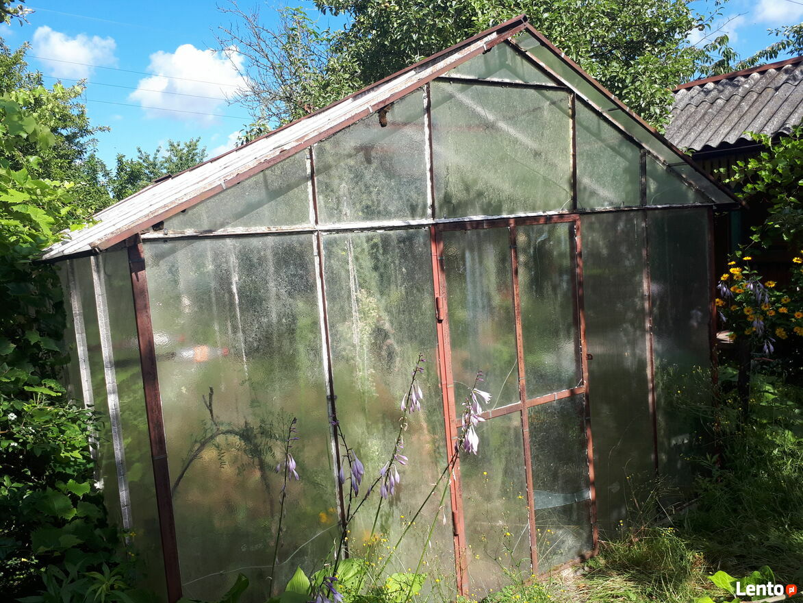 Na działce znajduje się niewielki drewniany domek (około14m2) z wyposażeniem, szklarnia oraz dwa pomieszczenia gospodarcze.