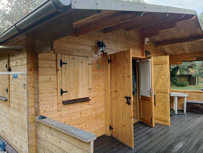 14Działka budowlana ogrodzenie siatka z 3 stron front sztachety drewniane brama szeroka, dwie furtki. Domek drewniany 35 mkw ...
