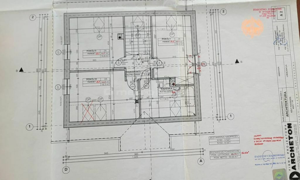 PIĘTRO: Pokój pierwszy 18,3 Pokój drugi 16,8 Pokój trzeci 16,30 Łazienka 11,1 korytarz 3,80 .