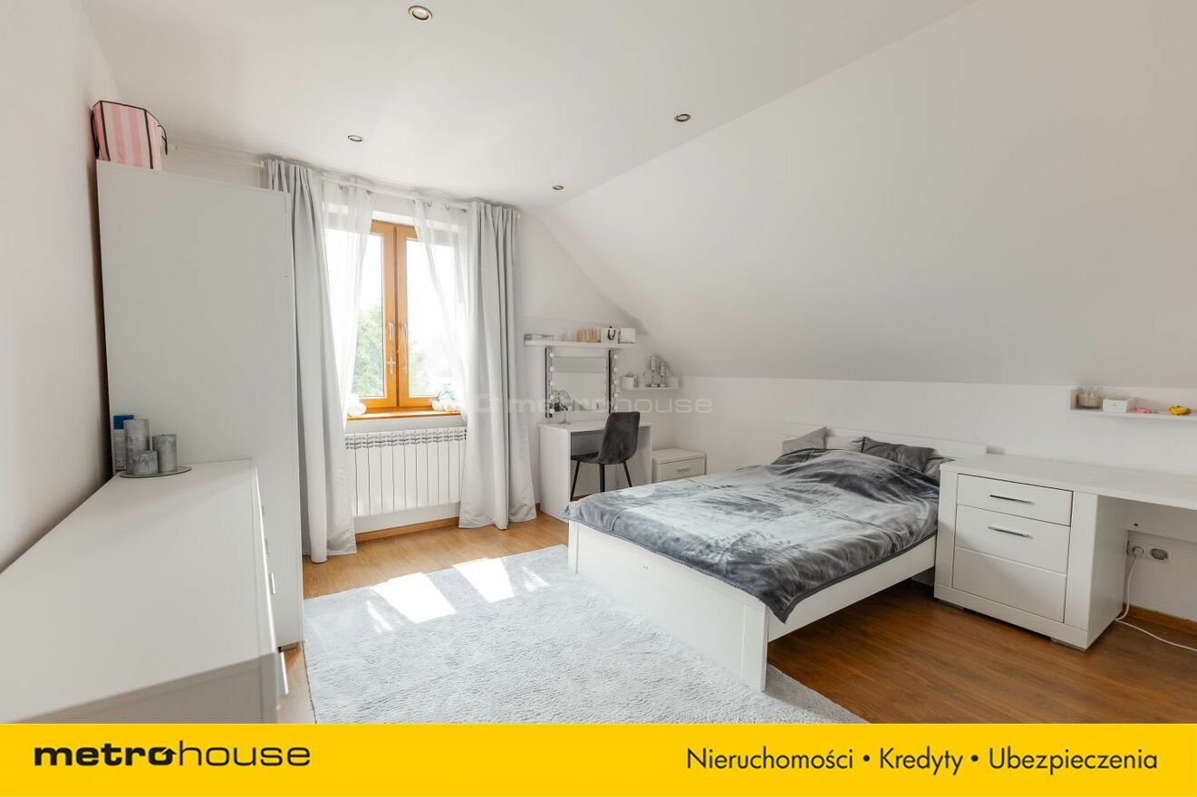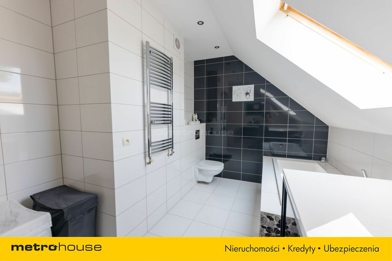 A w samym domu nabywca ma aż 5 wygodnych pokoi i 2 łazienki z czego 3 na piętrze tzw. sypialnie plus łazienka, a na parterze od wejścia wita nas otwarta, jasna i elegancka przestrzeń tj. połączenie salonu z kuchnią i dużym przedpokojem tworzy pokaźną , wygodną i bardzo ładną przestrzeń do życia całej rodziny. A tuz obok dodatkowo mamy do dyspozycji pokój na np. sypialnię lub biuro, łazienkę , kotłownię i olbrzymi schowek pod efektownymi i doświetlonymi schodami prowadzącymi na piętro. Tutaj znajdują się naprawdę obszerne i ustawne, jasne 3 sypialnie i olbrzymia łazienka z wanną i hydromasażem. Na docieplonym strychu/poddaszu możliwość wykorzystania powierzchni na dowolne cele użytkowe.